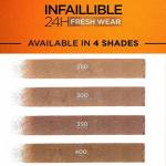 Get perfect coverage that lasts all day with L'Oréal Paris Infallible 24H Foundation in D Tan 400. Its lightweight formula gives you a matte, shine-free complexion and withstands sweat and heat without caking or fading, even after hours of application. Ideal for long workdays or humid conditions, it works as a quick finishing touch or as a full foundation. It can be used alone or over foundation, providing a natural look that lasts for hours.