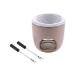 طقم الفوندو المصنوع من البورسلين المقاوم للحرارة، ويحتوي على شوكتين للغمس والمشاركة بسهولة.