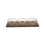 لمسة من الأناقة والدفء في منزلك اكتشف تراي الخشب الفاخر مع 3 أوعية زجاجية بتصميم أنيق وعصري